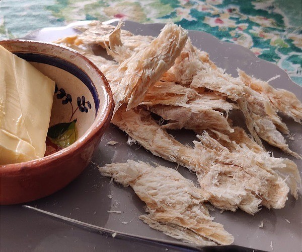 Je suis également intéressé à essayer le harðfiskur – du poisson séché (dans ce cas, de l'aiglefin) avec du beurre salé, car j'ai lu que c'était une collation islandaise populaire. C'est la réponse islandaise au poisson séché, populaire dans le pays depuis des siècles… et bien sûr, il regorge également de protéines, de vitamines et d'oméga 3, ce qui en fait une collation très saine. Une fois que vous l’aurez essayé, vous comprendrez pourquoi c’est un incontournable islandais !
