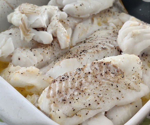 Notre plat principal était de la morue cuite au beurre et assaisonnée de sel et de poivre. C'est un excellent exemple du grand avantage de ne pas essayer de trop compliquer un plat, car la morue est si délicieuse qu'elle n'a besoin de rien d'autre.