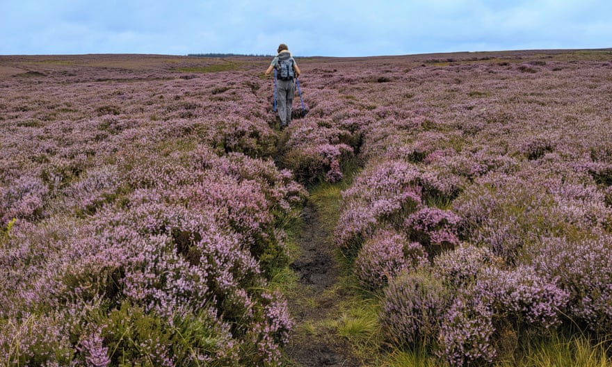 Encore fatigués de la veille, nous avons marché d'un air maussade à travers d'immenses prairies bosselées sous une pluie incessante, jusqu'à la rivière Coquet et Rothbury, une ville importante et notre base pour les trois nuits suivantes, et le meilleur et le pire jour de notre promenade. D'abord le meilleur : vivant dans le Devon, on pourrait penser que j'adorerais la bruyère, mais je n'avais jamais vu une bande violette comme celle qui nous a accueillis le lendemain dans le parc national de Northumberland.