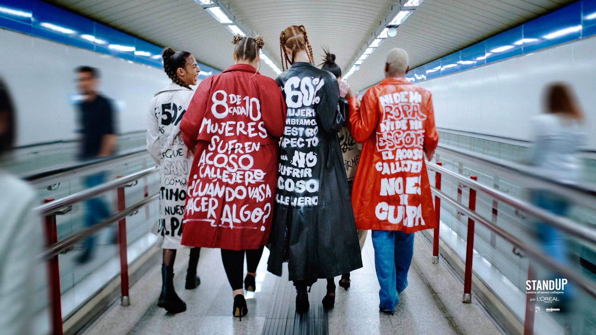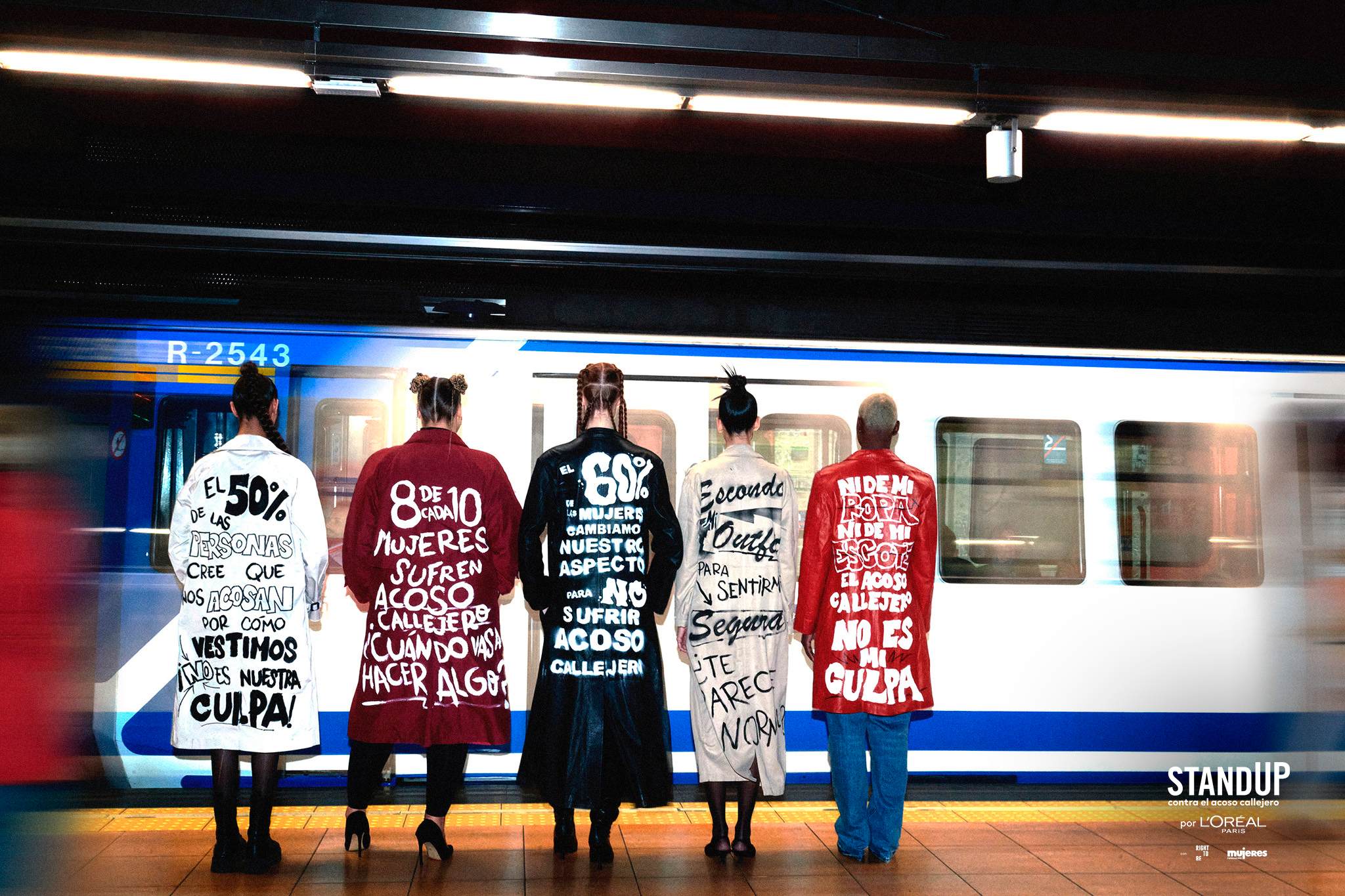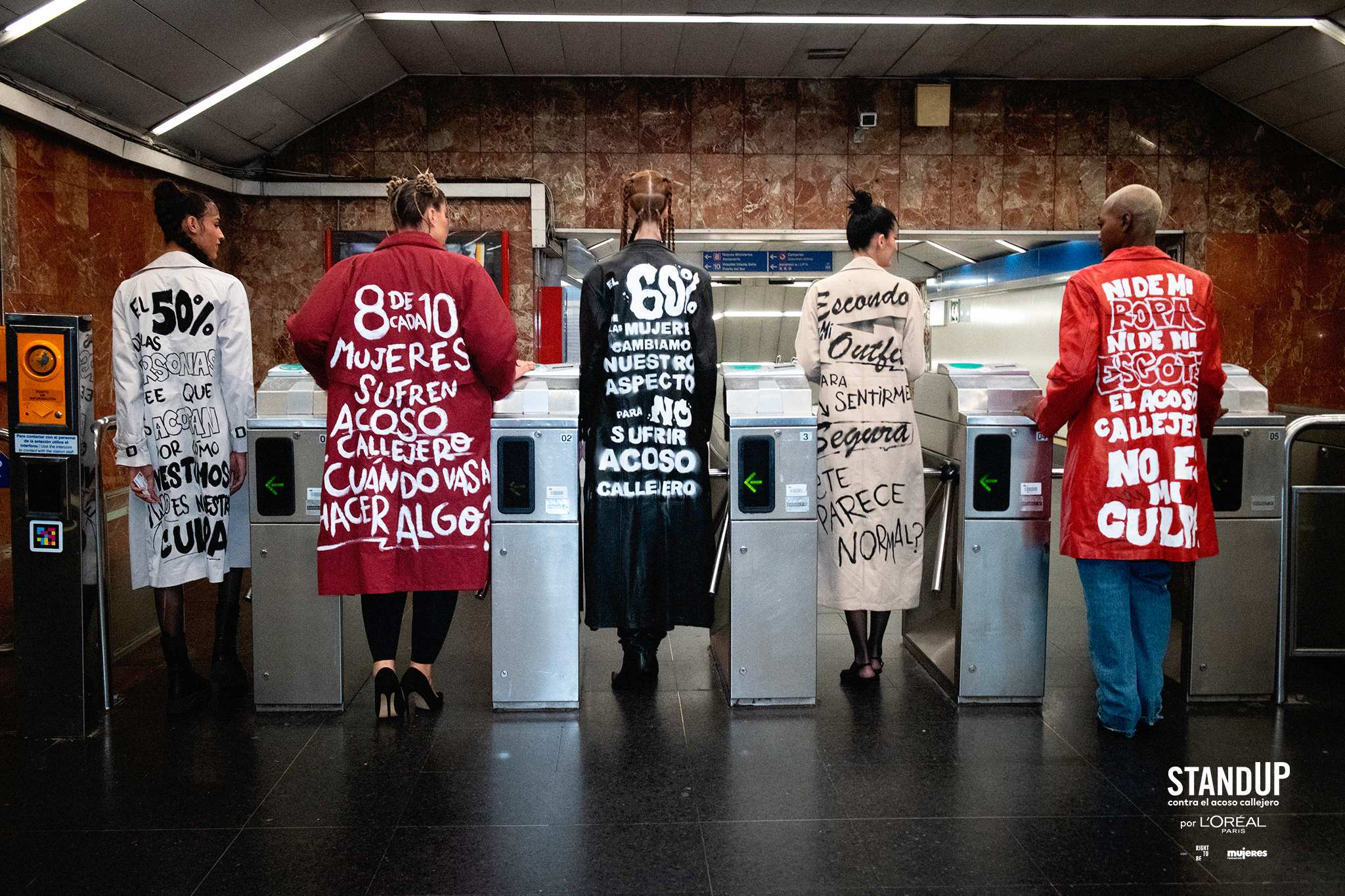 Son exécution a été effectuée sur deux fronts le 7 avril. D'une part, la marque a collaboré avec Metro de Madrid pour faire Parade pour leurs arrêts à cinq modèles Vêtu de gabardines dans lesquelles certaines des données de l'étude ont été lues. « Ni de mes vêtements, ni mon décolleté. Le harcèlement de rue n'est pas ma faute » ou « Je cache ma tenue pour me sentir en sécurité, pensez-vous normal? », Ils pourraient être lus dans les vêtements.