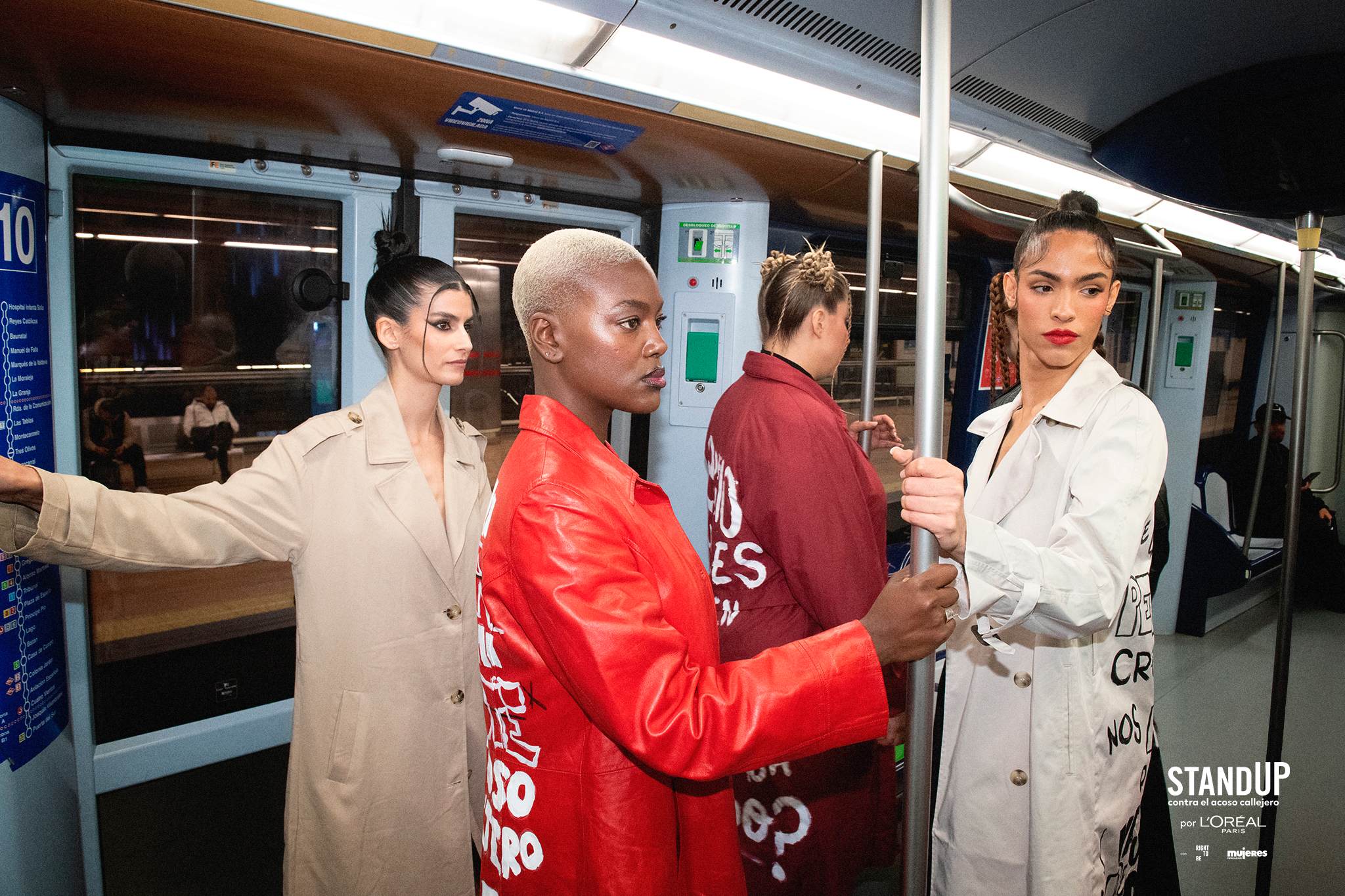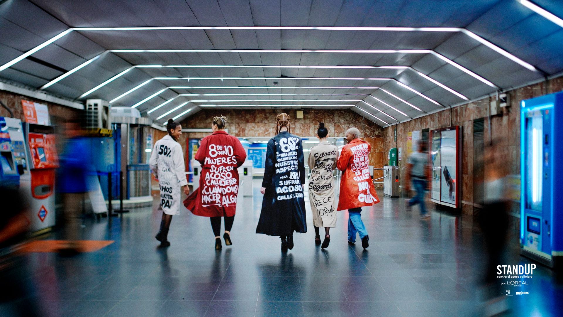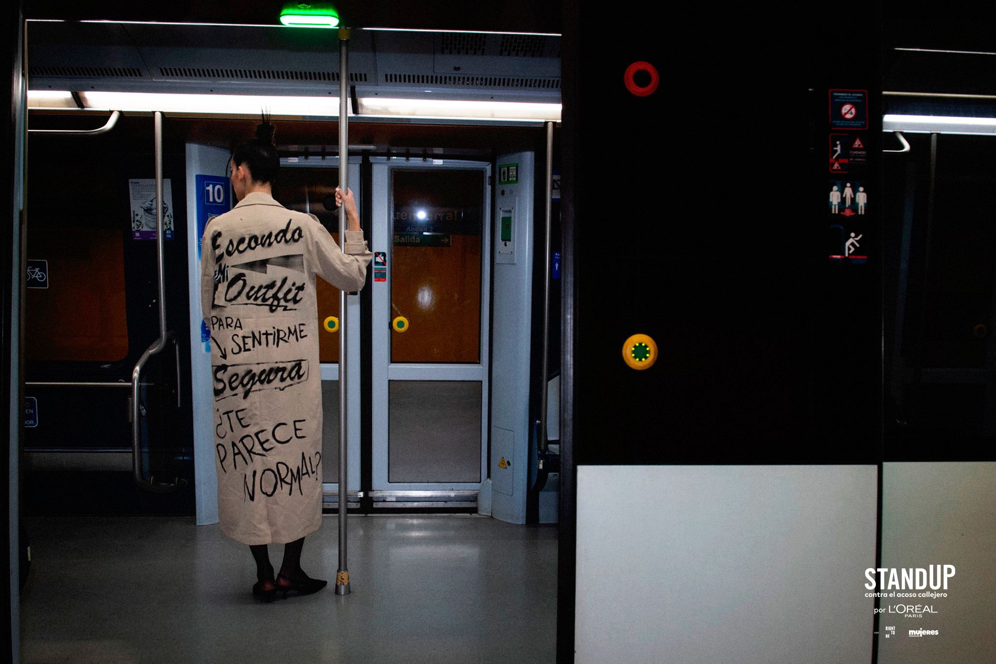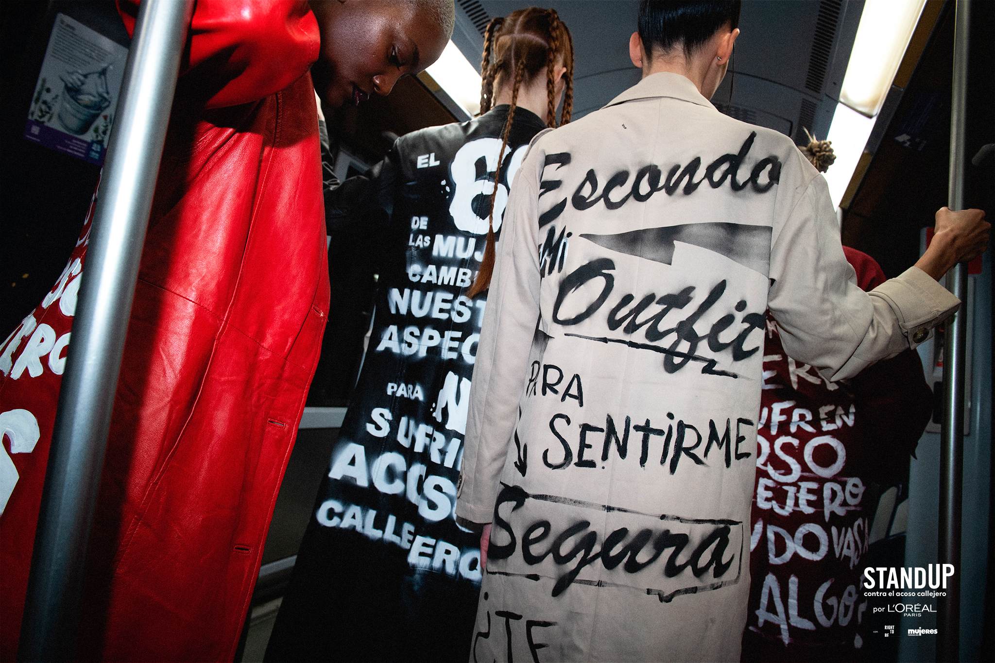 Son exécution a été effectuée sur deux fronts le 7 avril. D'une part, la marque a collaboré avec Metro de Madrid pour faire Parade pour leurs arrêts à cinq modèles Vêtu de gabardines dans lesquelles certaines des données de l'étude ont été lues. « Ni de mes vêtements, ni mon décolleté. Le harcèlement de rue n'est pas ma faute » ou « Je cache ma tenue pour me sentir en sécurité, pensez-vous normal? », Ils pourraient être lus dans les vêtements.